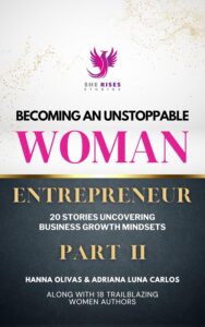 She Rises Studios was founded by Hanna Olivas and Adriana Luna Carlos, the mother-daughter duo to help empower women around the world. This anthology of 25 inspiring women across the globe will empower and impact readers to never settle for the bare minimum but rather to take hold of their dreams and turn them into a reality.